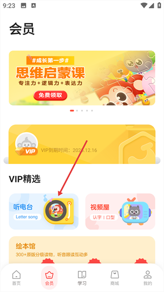2、進入【會員】頁面,點擊的【聽電臺】選項。