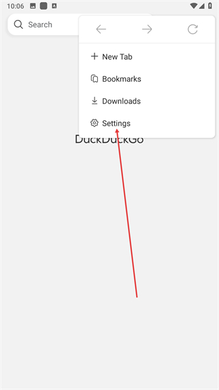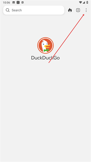 1、打開duckduckgo瀏覽器主界面,點擊右上角三點圖標展開功能菜單列表。
