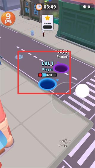 4、在限時2分35秒內操控黑洞吞噬場景中的人物,積累進度到10/10,快速完成關卡任務提升等級。