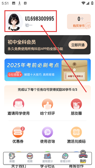 2、在個人中心頁面的上方區域,點擊用戶名模塊,進入包含個人信息的相關操作頁面。