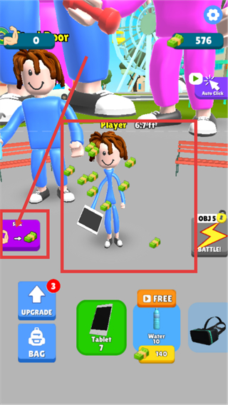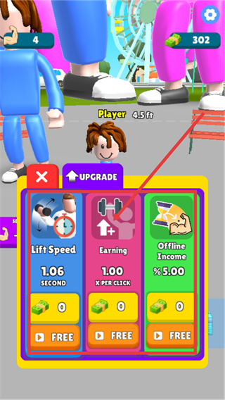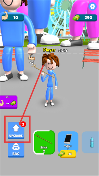 1、看到界面的【UPGRADE】按鈕啦,點擊它能提升角色能力哦,搭配【Stick-2】道具還能加快成長進度呢。