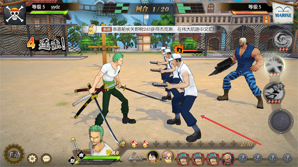 3、戰斗中觸發【4連擊】提升輸出效率,關注系統提示獲取獎勵并注意敵人血量調整攻擊節奏。