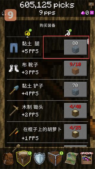2、升級裝備至【黏土腿-+5-FPS】,提升采礦效率以快速獲取召喚怪物所需的資源材料。