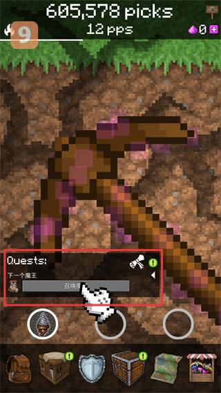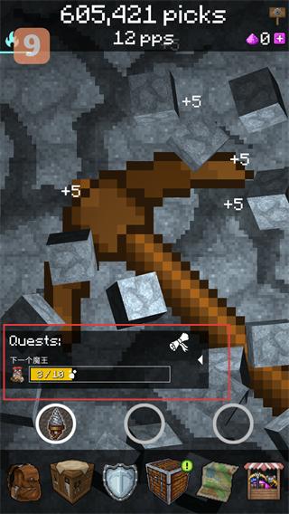 3、查看【Quests-下一個魔王】進度,當前【3/10】,持續挖取方塊積累進度值推進任務。