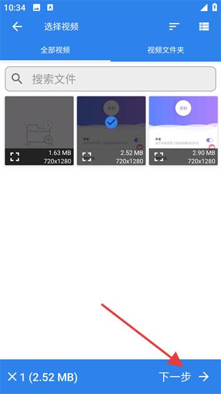 2、進(jìn)入選擇視頻頁(yè)面并勾選目標(biāo)視頻,點(diǎn)擊【下一步】。