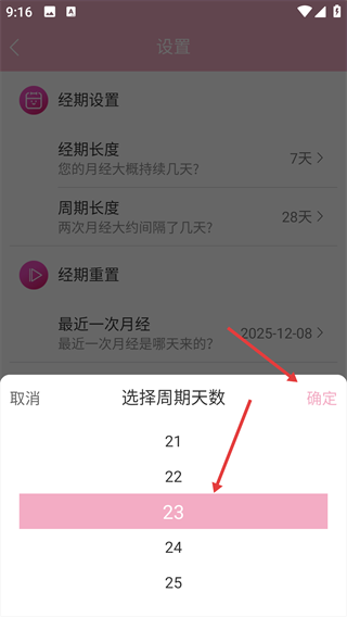 4、選定目標天數,點擊【確定】按鈕,就能完成周期天數的設置調整。