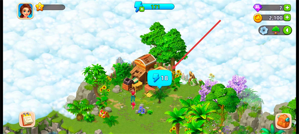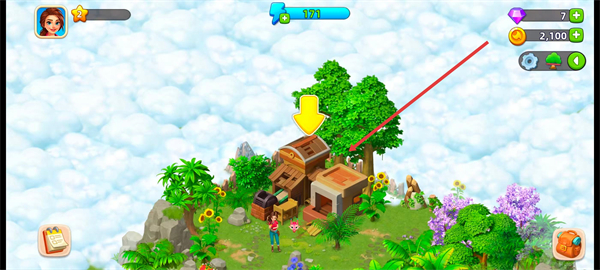 1、進入游戲主界面,跟隨指引點擊目標建筑區(qū)域。