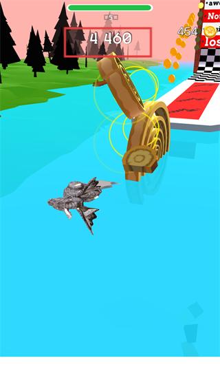 3、繼續推進并觸發大型道具的增益,分數更新為【4460】,逐步靠近關卡終點區域。