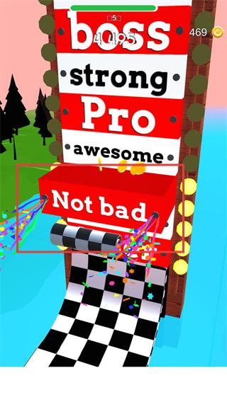 4、抵達終點后觸發【Not-bad】評價,最終金幣數達【469】,可通過商城升級工具提升后續收益。