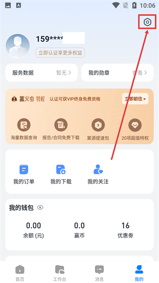 2、進入個人中心頁面后,找到右上角的【設(shè)置】圖標并點擊。