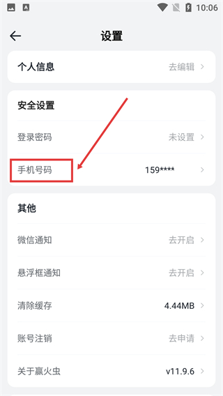 3、進入【設(shè)置】頁面,找到【安全設(shè)置】下的【手機號碼】選項并點擊。