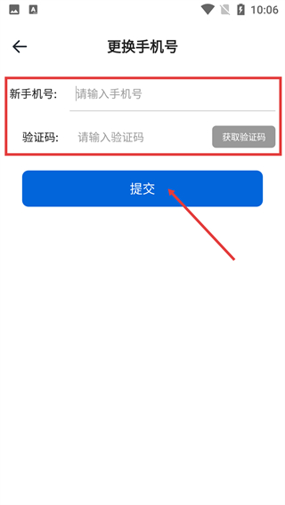 4、進入【更換手機號】頁面,先輸入【新手機號】,再獲取并填寫【驗證碼】,最后點擊【提交】即可完成號碼更換。