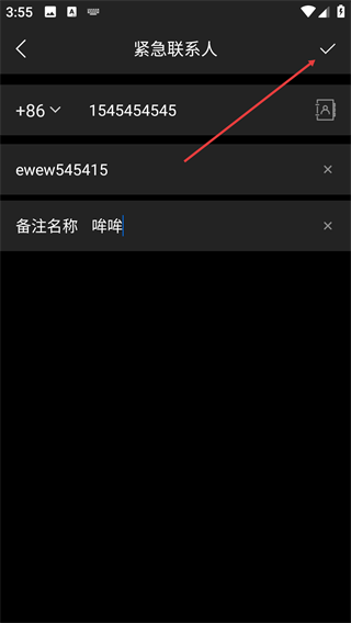4、填好后,點擊右上角的【√】按鈕,即可完成緊急聯系人的添加操作。