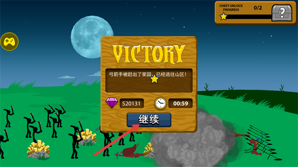 4、通關后點擊【繼續】按鈕,可獲得【鉆石】等獎勵,同時解鎖新的戰役關卡,積累資源提升部隊。