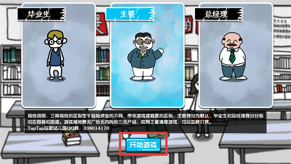 1、選好對應角色后點【開始游戲】按鈕,就能進入游戲主界面,開啟模擬經營的玩法啦。