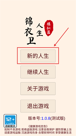 1、點擊【新的人生】開啟錦衣衛生涯,進入角色創建界面設定初始身份,開啟明朝錦衣衛的模擬人生之旅。