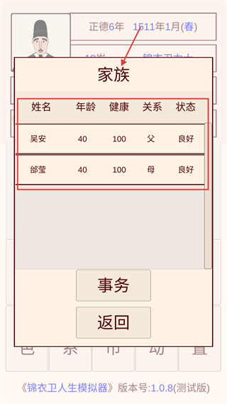 2、查看【家族】界面中父母的健康狀態,保持家族成員狀態良好,對后續家族事務和資源獲取有積極影響。
