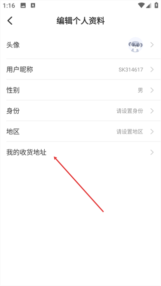 3、在【編輯個人資料】界面,選擇【我的收貨地址】選項。