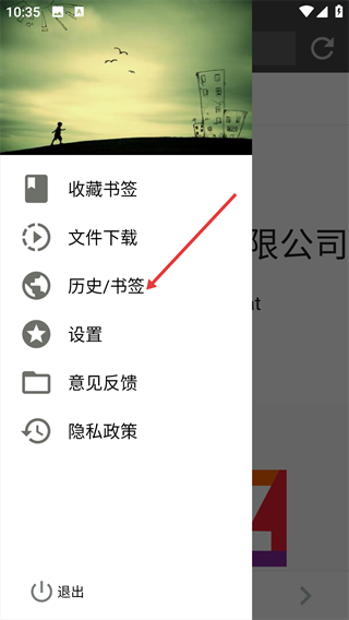 2、在功能側(cè)邊欄中,找到【歷史/書簽】選項(xiàng)并點(diǎn)擊。