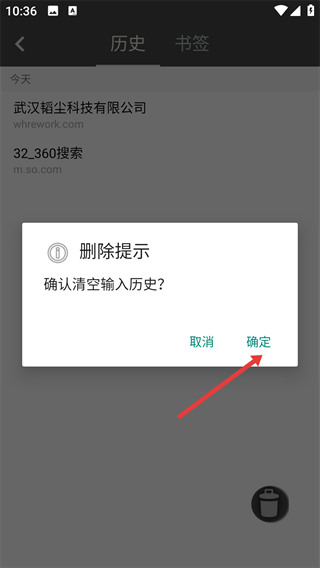 3、點(diǎn)擊右下角的刪除按鈕,觸發(fā)“確認(rèn)清空輸入歷史?”的提示彈窗。