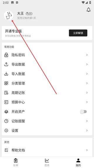 1、打開極簡記賬進(jìn)入我的頁面,點擊頭像區(qū)域,進(jìn)入個人中心頁面。