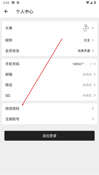 2、在個人中心頁面找到修改密碼選項,點擊該選項進(jìn)入修改方式頁面。