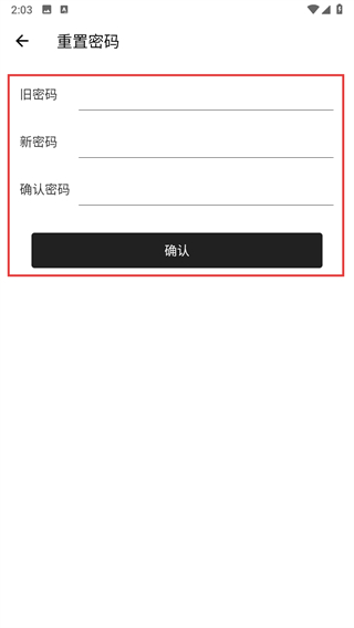 4、在重置密碼頁面依次輸入舊密碼新密碼確認(rèn)密碼,完成后點擊確認(rèn)按鈕。