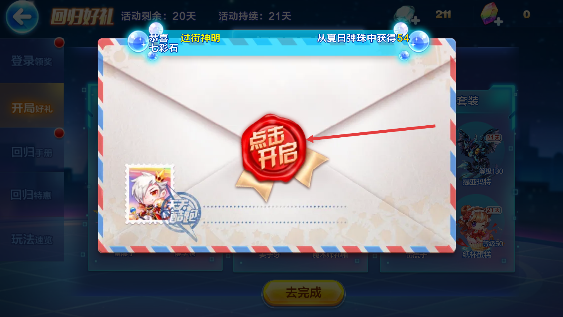 1、參與【回歸好禮】活動,點擊開啟信封領取獎勵,快速回歸游戲節奏提升體驗。