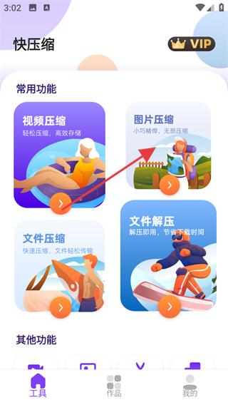 1、打開軟件之后可以看見這樣的界面,這里有視頻壓縮、圖片壓縮、文件壓縮、解壓等等。