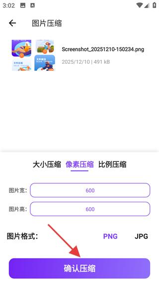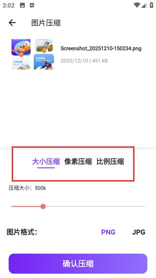 3、看見這個界面之后可以設置大小壓縮、像素壓縮、比例壓縮、圖片格式等等,點擊確認壓縮。