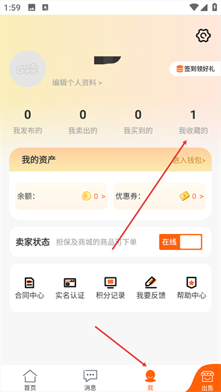 1、進(jìn)入“我”的頁(yè)面,點(diǎn)擊“我收藏的”選項(xiàng)。