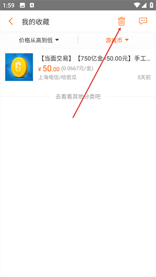 2、在“我的收藏”頁(yè)面,點(diǎn)擊右上角的垃圾桶圖標(biāo)。