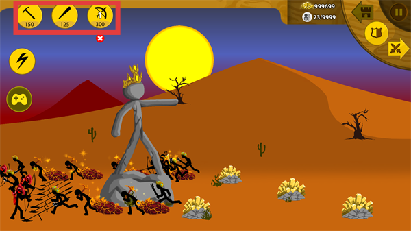 3、戰(zhàn)斗中利用【150】【125】【300】對(duì)應(yīng)的兵種生產(chǎn),指揮部隊(duì)圍繞雕像作戰(zhàn),防守資源點(diǎn)。