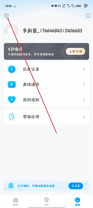 1、打開(kāi)多劇視頻app,在個(gè)人中心頁(yè)面,點(diǎn)擊設(shè)置按鈕。