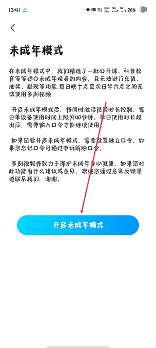 3、點(diǎn)擊進(jìn)入之后,點(diǎn)擊頁(yè)面下方開(kāi)啟青少年模式。