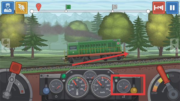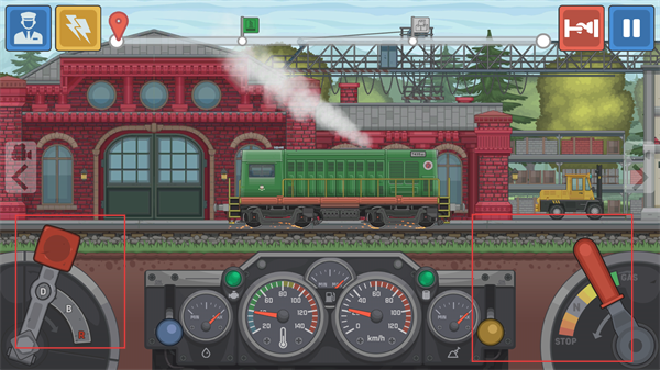 1、進(jìn)入駕駛界面后,觀察儀表盤狀態(tài),通過左右操控桿調(diào)整火車的運行參數(shù),準(zhǔn)備啟動行駛。