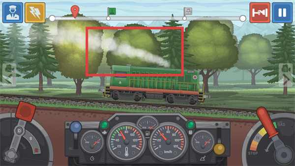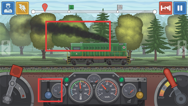 3、若火車冒出【黑色煙霧】,點擊左側(cè)儀表盤的對應(yīng)按鈕,調(diào)整設(shè)備狀態(tài)以恢復(fù)正常運行。