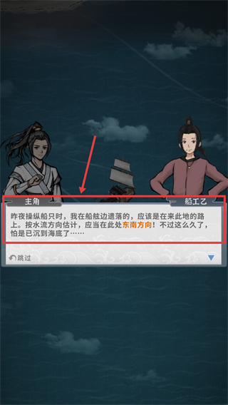 4、按【船工乙】提示法寶在東南方向,用選定的移動(dòng)方式前往該區(qū)域,嘗試尋找遺落的重要法寶。