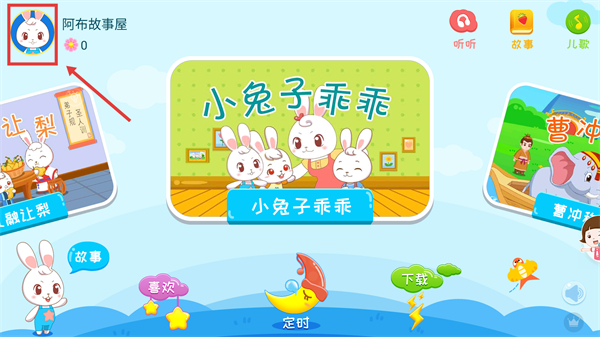 1、進入【阿布故事屋】界面后,點擊左上角頭像按鈕。