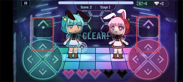 1、在【Stage-2】中,根據角色上方的【方向圖標】,操作對應方向鍵完成指令,觸發【CLEAR!】提升【Score】。