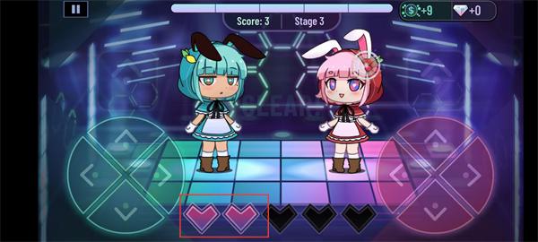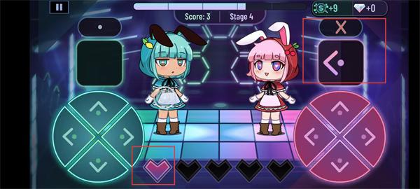 3、在【Stage-4】里,匹配下方【心形】與角色旁的【方向圖標】,操作對應按鍵積累得分。