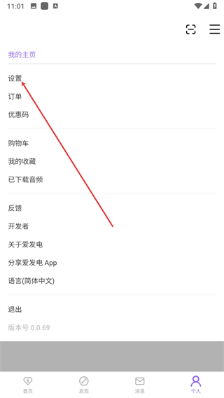 1、打開愛發電應用進入首頁,點擊個人選項。