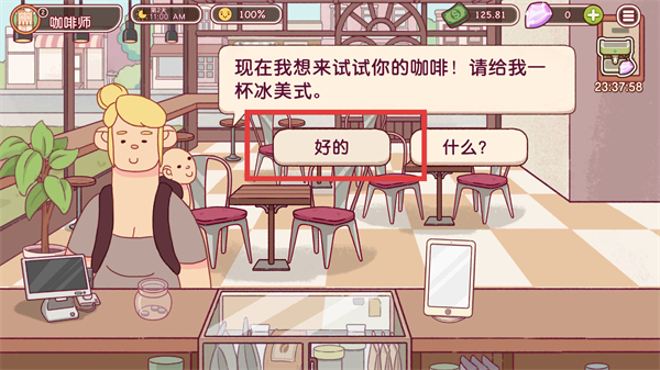 1、看到顧客點了【冰美式】,直接點擊【好的】按鈕接下訂單,這樣就能開始準備制作這杯咖啡啦。