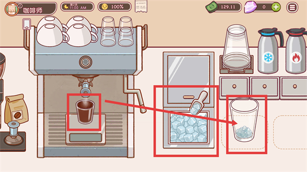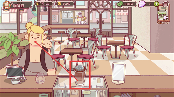 4、把做好的冰美式放到柜臺,就能給顧客送達啦,完成訂單還能獲得收益,超有成就感的哦。