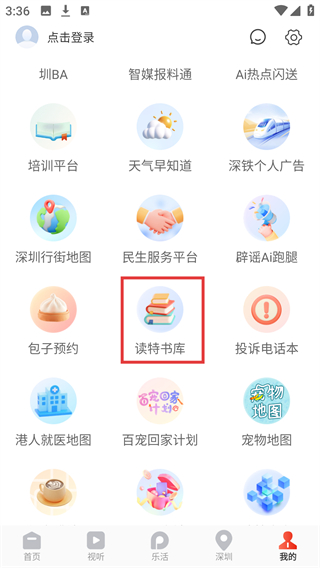 2、進入【我的】頁面后,找到【讀特書庫】功能選項并點擊,即可進入書庫界面查看各類書籍資源。