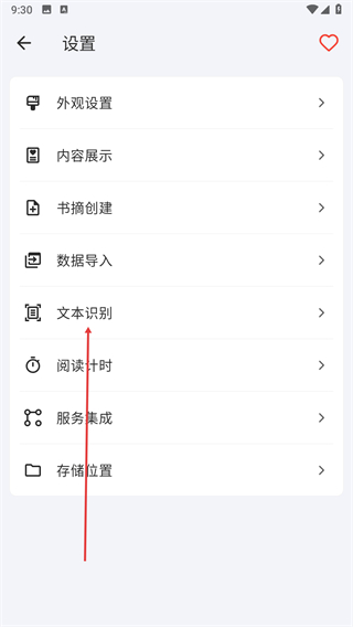 3、在設置頁面中,找到文本識別選項,點擊進入文本識別設置頁面。