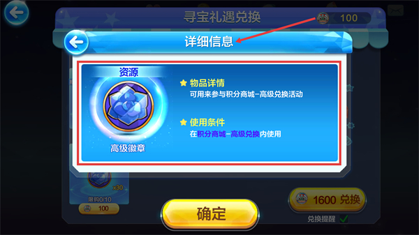 2、【高級(jí)徽章】可在【積分商城】-【高級(jí)兌換】活動(dòng)中使用,兌換所需資源,助力游戲進(jìn)程需留意使用條件。