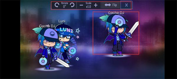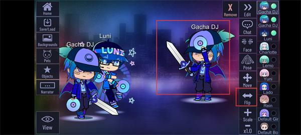 3、選中場景中的【Gacha-DJ】角色,點擊右側【Flip】功能,可翻轉角色的朝向改變展示效果。