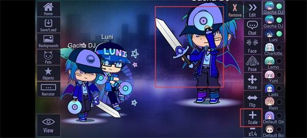 4、調整【Scale】參數至【x1.4】,放大場景中【Gacha-DJ】角色的尺寸,優化展示比例。