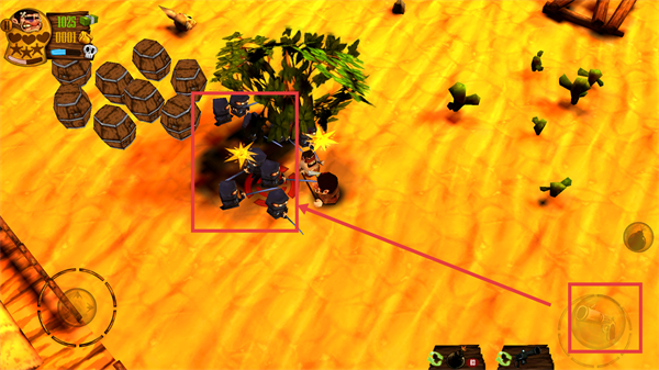 2、動態戰斗場景:外星人會挖地道偷襲,利用炸藥桶爆破可破壞地形,摧毀外星飛船獲得特殊獎勵。